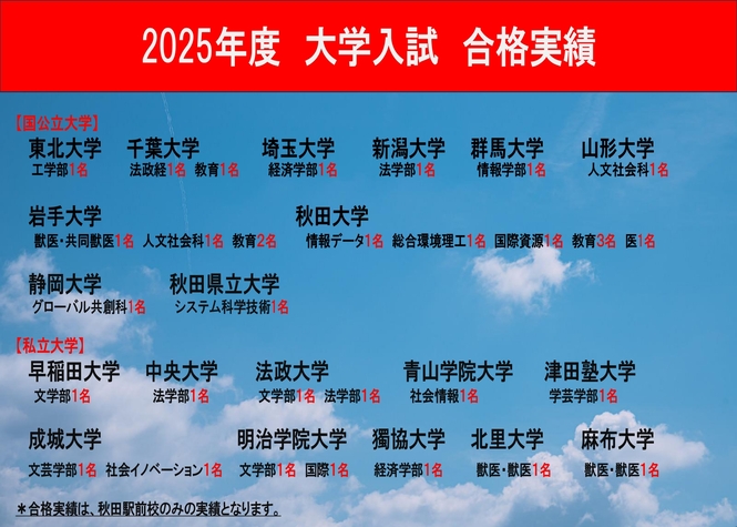 代ゼミサテライン予備校 寺小屋義塾 合格実績